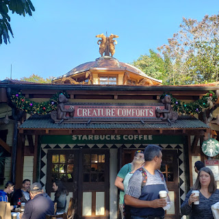 アニマルキングダムの入り口を入ったらちょうど良い具合にスターバックスがありました。あからさまにスタバとわからないような外観になっています。